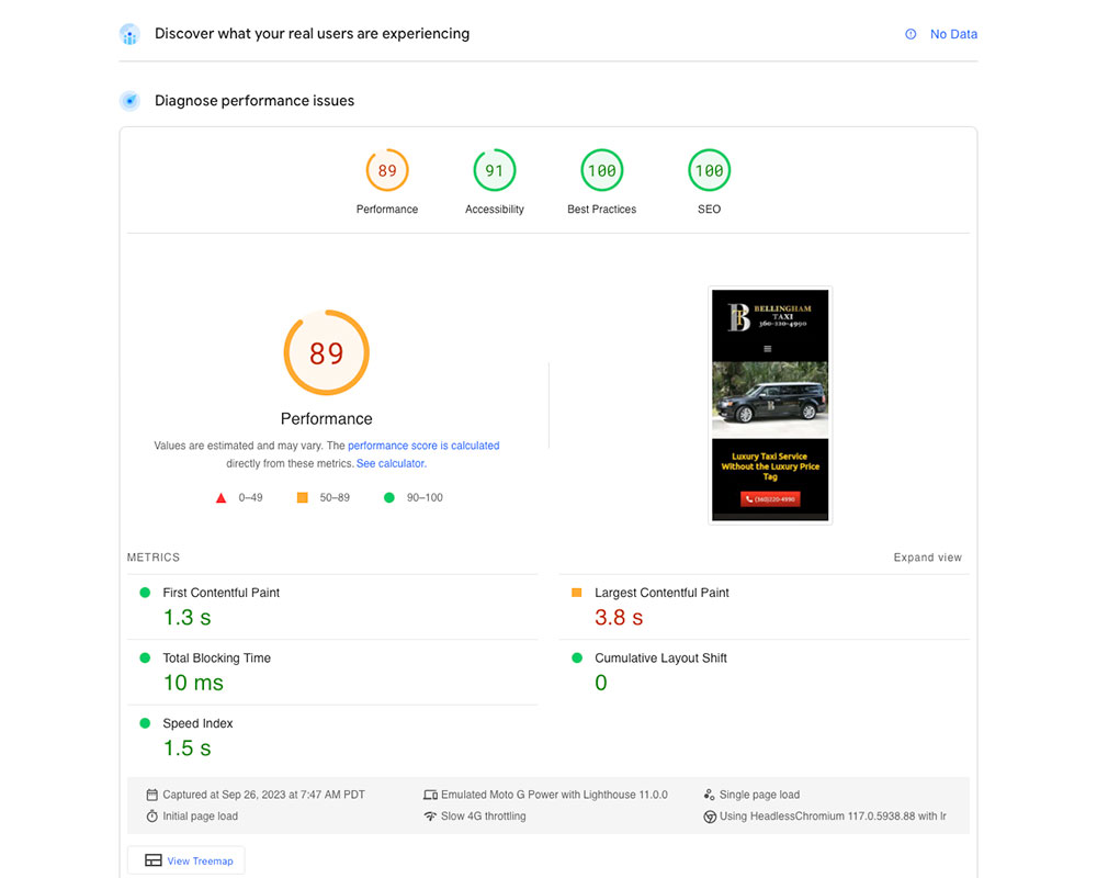 The result? A high-performing, SEO-optimized website that boasts a 89 on Google’s metrics. Bellingham Taxi’s online presence now not only exudes luxury but is also strategically designed to attract and convert potential customers. With its new digital front, Bellingham Taxi is redefining luxury transportation in the Bellingham area.