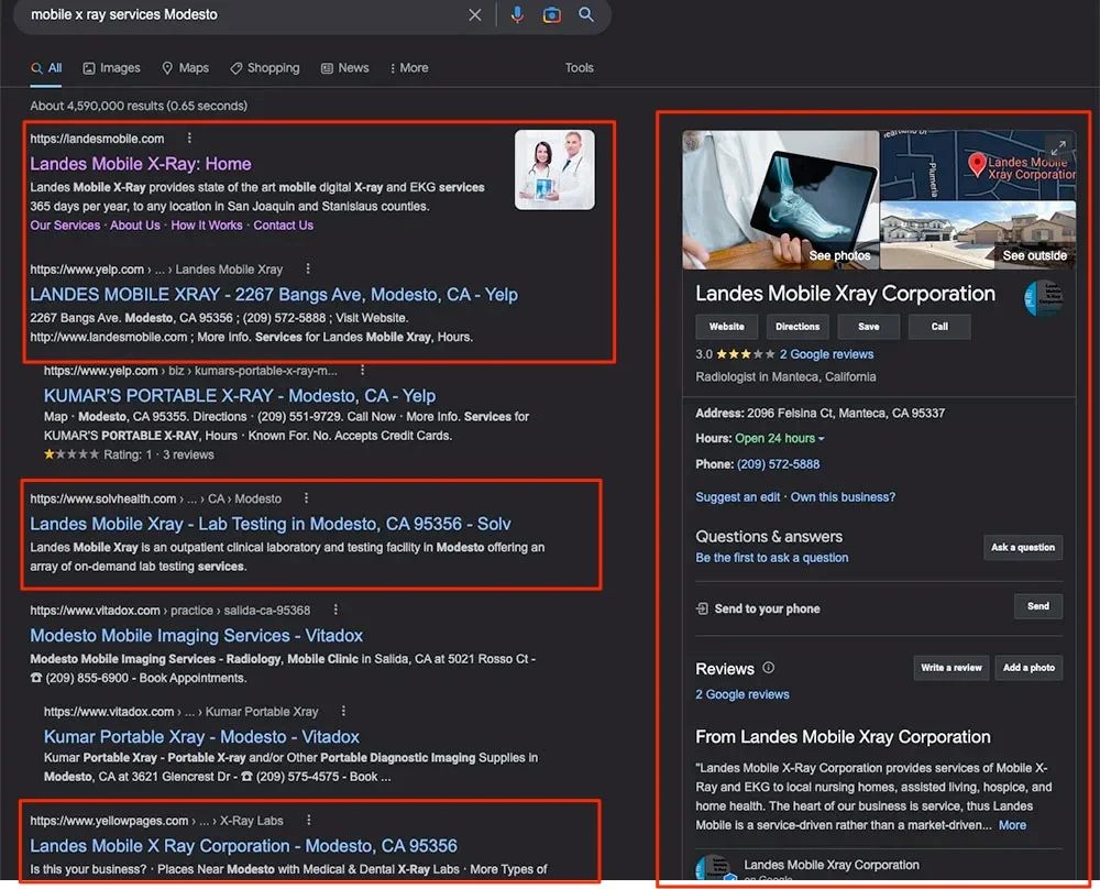 This is what those search results mean when someone searches for Mobile X Ray services Modesto:
