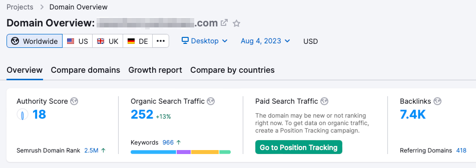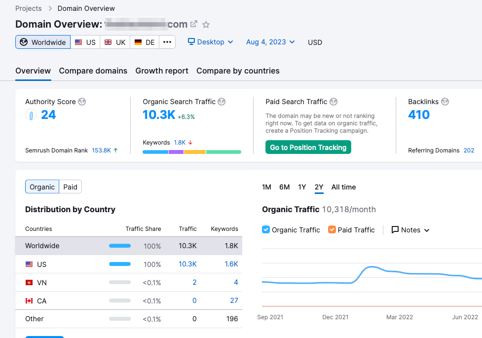 I subscribe to SEMRush, a premium SEO research tool that allows me to do a deep dive into any company’s website, so I ran some detailed reports on his competitor. I was particularly interested in how much traffic they were getting to their website, and how their users were finding them.
