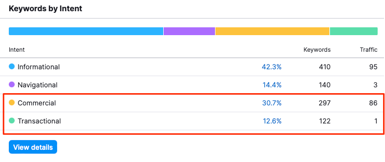 This page shows that they get 252 visits per month from Google searches and my client wanted a piece of that business. Out of those 252 visitors, 87 have a commercial interest. These are the people that want to do business with our competitor.