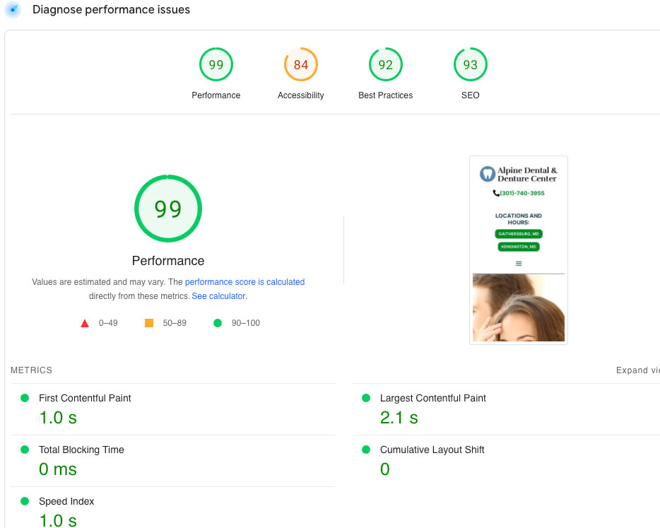 But we understand that aesthetics are not the be-all and end-all of a successful website. Speed, responsiveness, and easy navigation form the backbone of any top-notch site. And so, we are proud to share that The Alpine Dental’s website scores over 80 on Google’s mobile speed test, ensuring an extremely fast and smooth user experience.